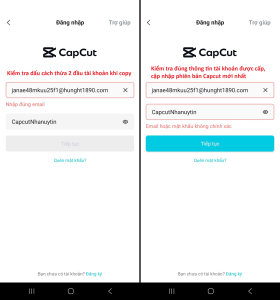 Khi đăng nhập tài khoản Capcut Pro bạn có thể gặp các lỗi thông báo như ví dụ, hãy thực hiện các bước sau để kiểm tra lại:
